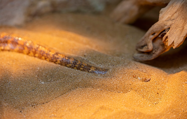 Sand boas and hook-nosed snakes are classic examples of burrowing species. In the wild, they spend most of their lives at or just below the surface of the ground, using the substrate for security and warmth. In a home terrarium, they’ll do exactly the same.